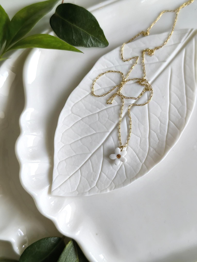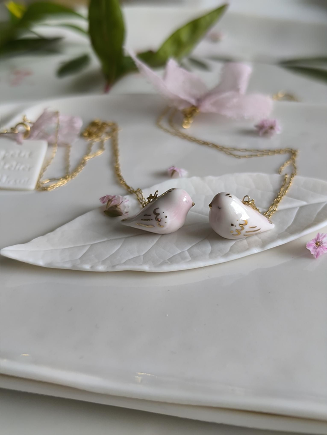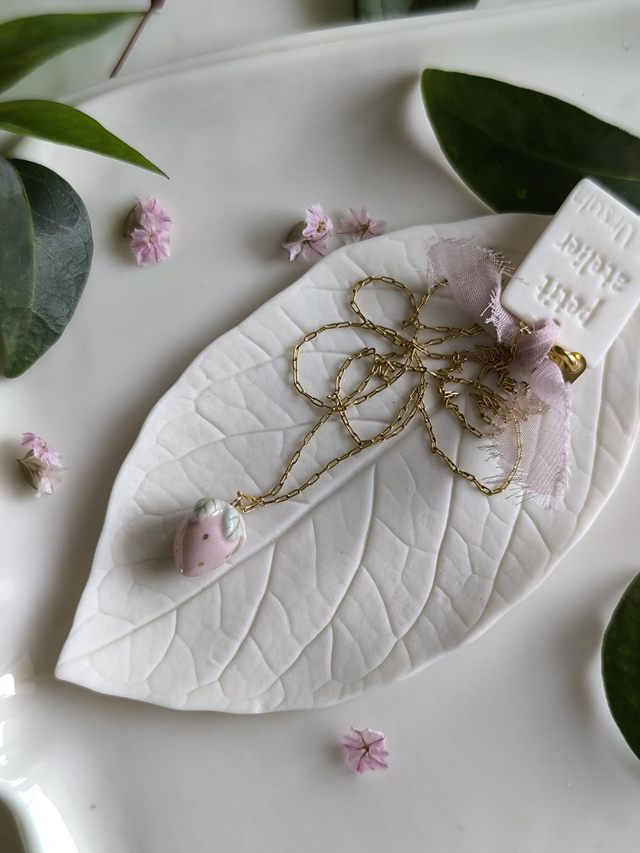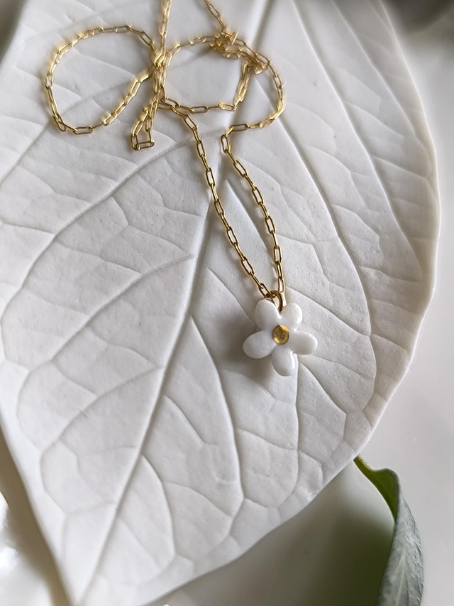 Dainty necklaces with porcelain pendants finished with tiny 18k gold-plated stainless steel chain.