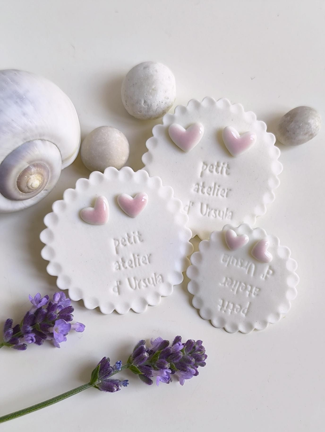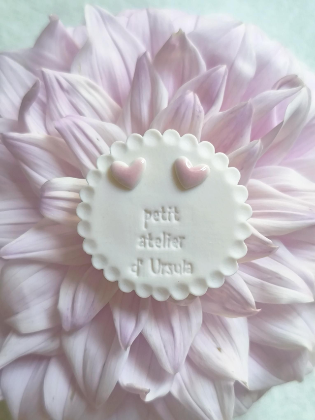 These small heart earrings are made from translucent porcelain and fitted on 925 sterling silver studs. Earrings are very lightweight and easy to wear. Each piece is hand-cut out of a thin porcelain slab and carefully refined. After bisque firing earrings are glazed with transparent pink glaze and fired again at high temperature. Each earring is slightly different and unique. All my items are made in a very small batches with lots of love and no two are alike ❤